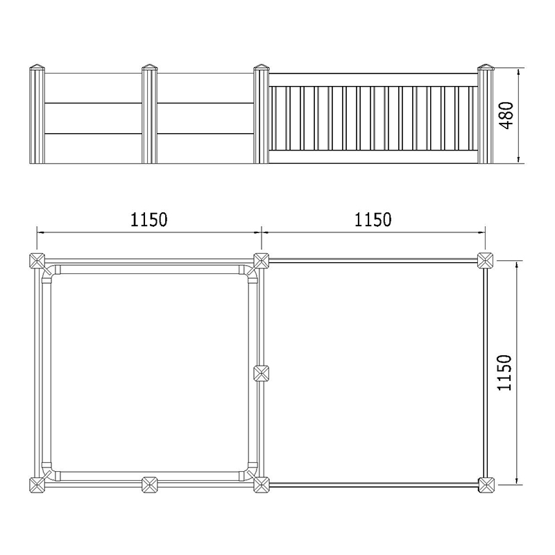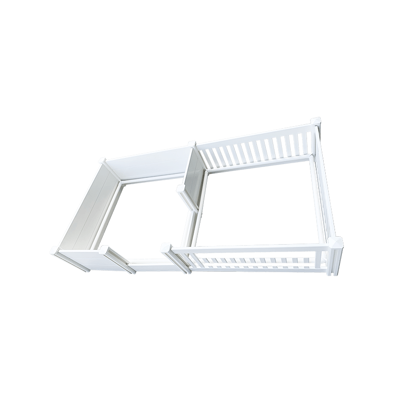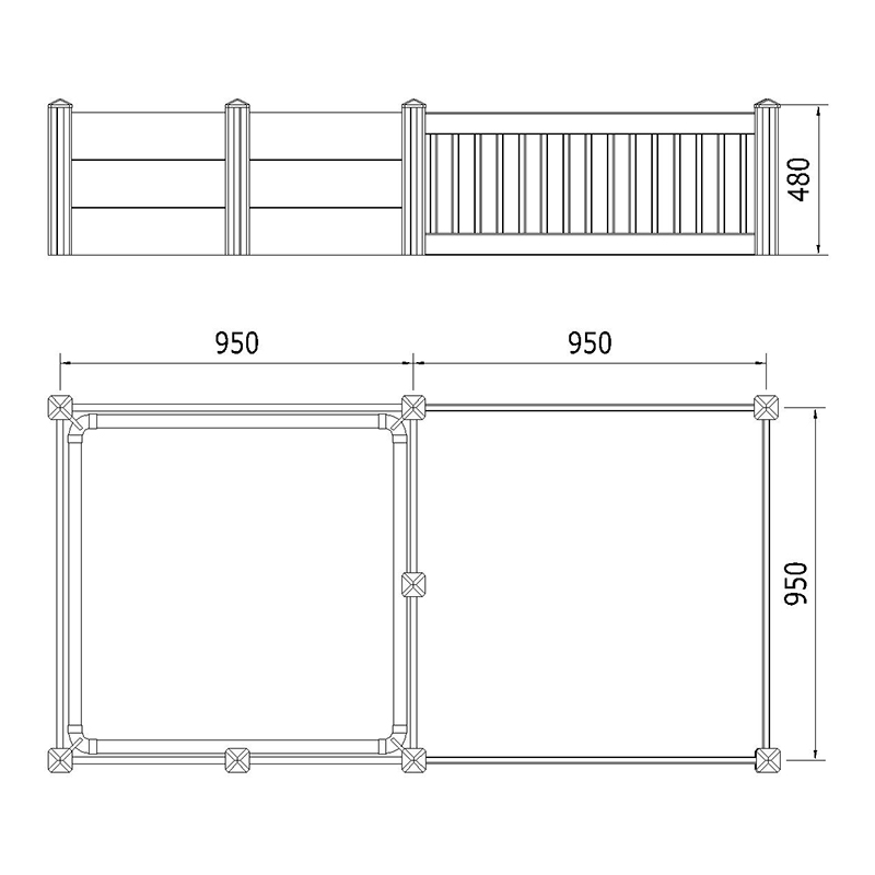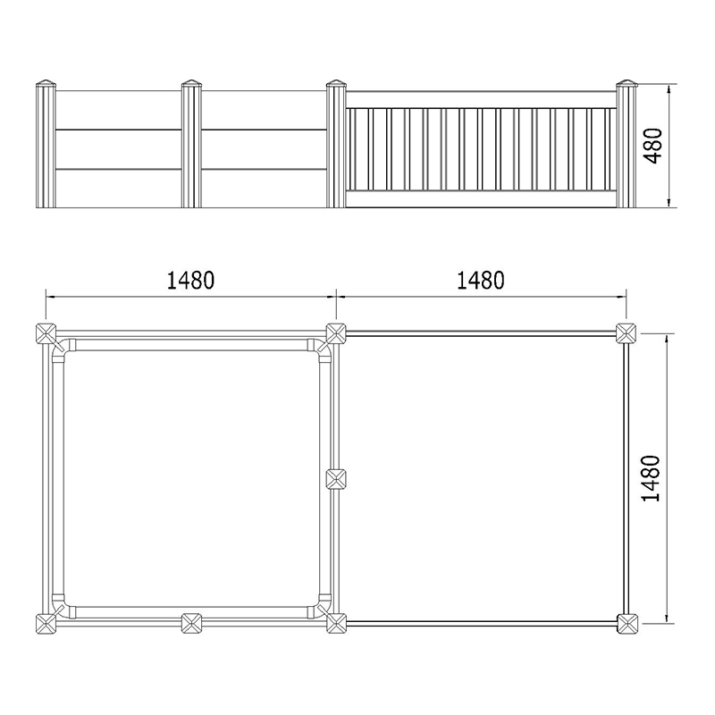 Có sẵn trong ba kích cỡ, 74.8'L x 37.4''W x 18.9''H, 90.6'L x 45.3'w x 18.9''H, và 116.6'l x 58.3''w x 18.9'h. Các bài đăng 3 "x 3" mạnh mẽ với mũ phẳng đảm bảo sự ổn định, trong khi đường ray 7/8 "x 6" được định tuyến trước có đường ray lợn tròn để an toàn.