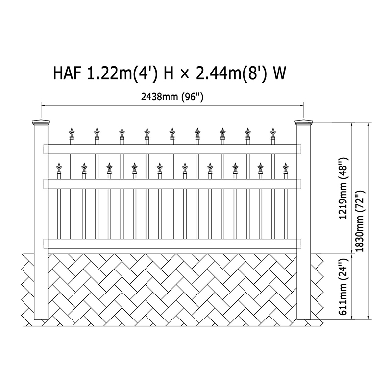 | Picket | 1 "x 1" x 40 '' x 19pcs (khoảng cách tiêu chuẩn) |